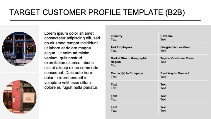 Most information required for the short pitch is in the reading deck. Therefore, founders can insert select reading deck slides directly into the pitch deck. Several pitch deck entries consolidate specific highlights from the reading deck into one slide. For example, a common practice is creating one slide that communicates the customer profile or persona and crucial market size data.