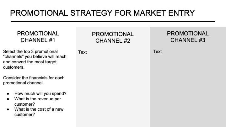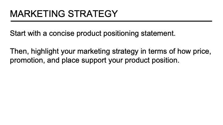 Then, you can provide highlights of how pricing, promotional activities, and placement channels support your product positioning. Pricing is essential in the marketing strategy because it directly impacts the business’s success. The reading deck’s marketing and sales strategy section should address policies regarding discounting and price changes as well as their impact on gross profit (revenue less cost of goods sold). When considering what price to charge, it is essential to realize that price should not be based entirely on cost plus some profit. Instead, consider various pricing methods and strategies to generate the necessary profits for the business. You must align your placement strategies with both your pricing and promotional strategy. Make sure to highlight the primary placement channels you will use to reach your customer throughout the sales cycle – from initial awareness to post-purchase service.